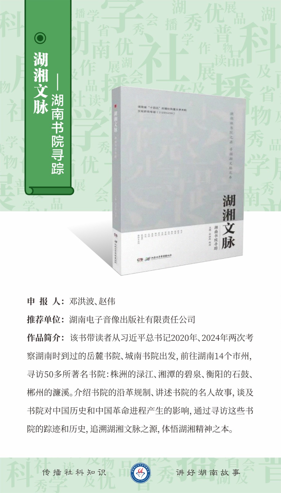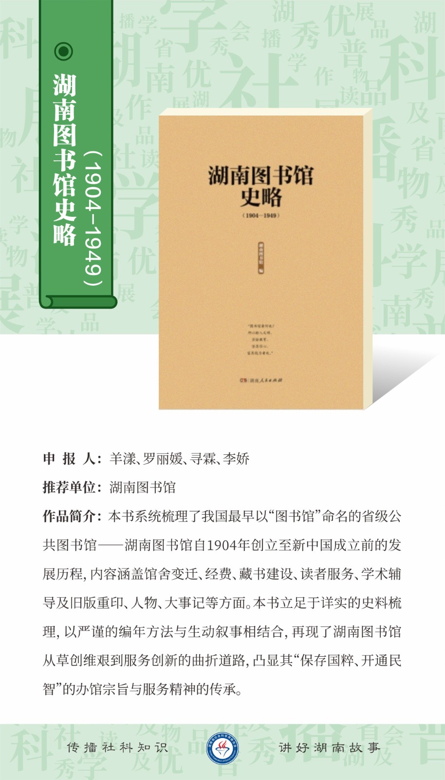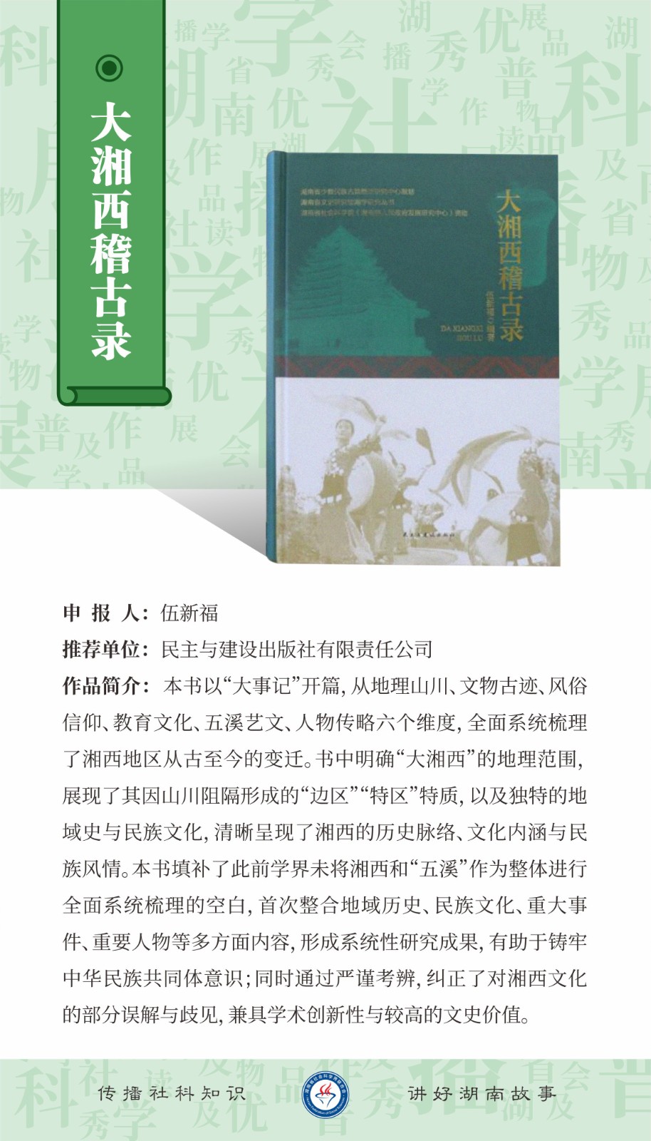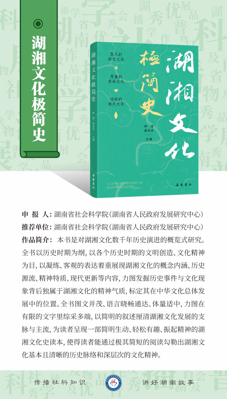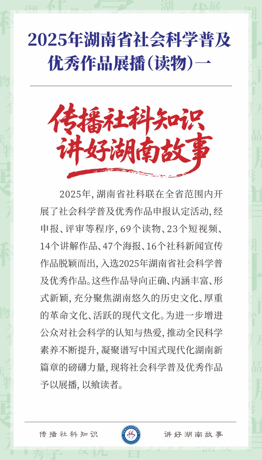 2025年湖南省社会科学普及优秀作品展播(读物)一